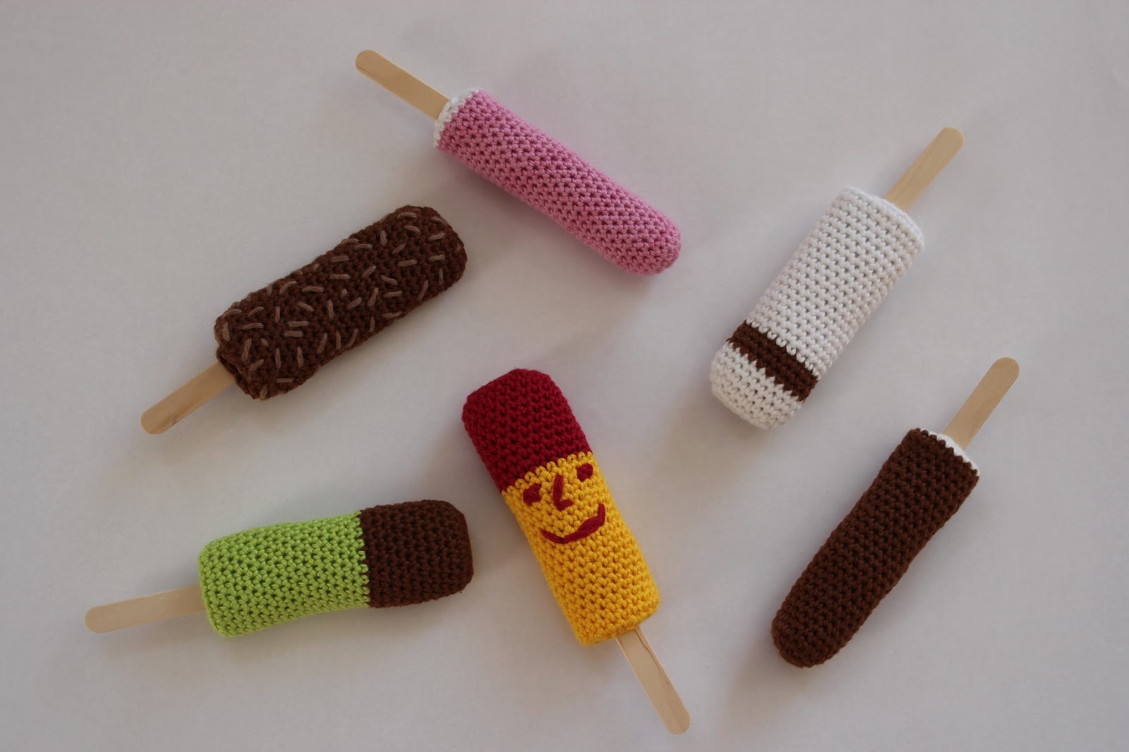 lidt forskellige af de kendte danske ispinde. Så find hæklenålen frem og placer dig et rart sted i skyggen og lad hæklingen begynde. Du finder opskriften lige her.